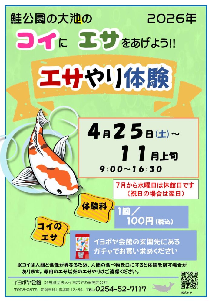 ニジマスにエサやり体験 コイにエサやり体験 はじまります