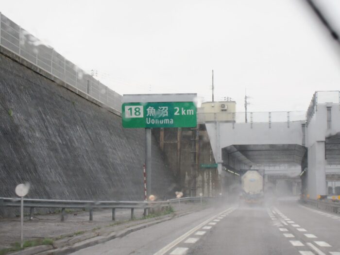 村上への帰り道、一定距離ごとに安全な場所に車を停め、魚の様子を見ながらイヨボヤ会館へ向かいました。