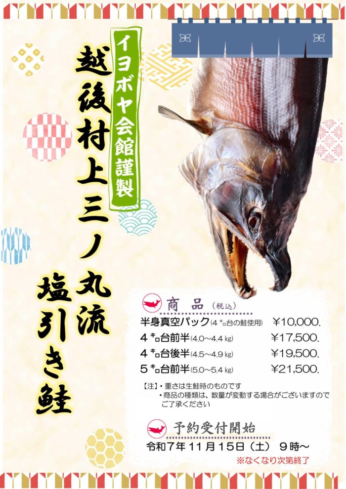 11月15日(土)9時~「越後村上三ノ丸流塩引き鮭」予約販売の受付を開始します!