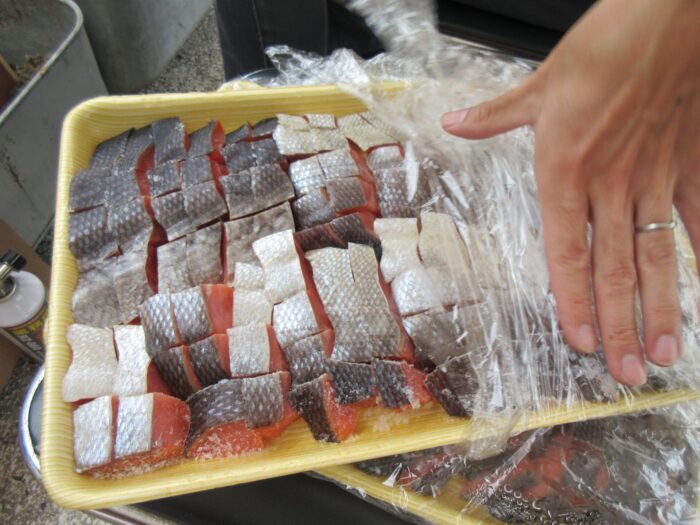 今年もイヨボヤ会館主催の塩引き鮭づくり講習会「越後村上三ノ丸流鮭塩引き道場」の道場師範が作る塩引き鮭を完全予約制・数量限定で販売します。