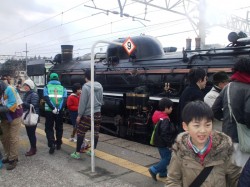 今日はJRジョイフルトレイン“きらきらうえつ”で村上市へお越しになった、『村上町屋人形さま巡りの旅』御一行様をサケリンと一緒にお出迎えしました!